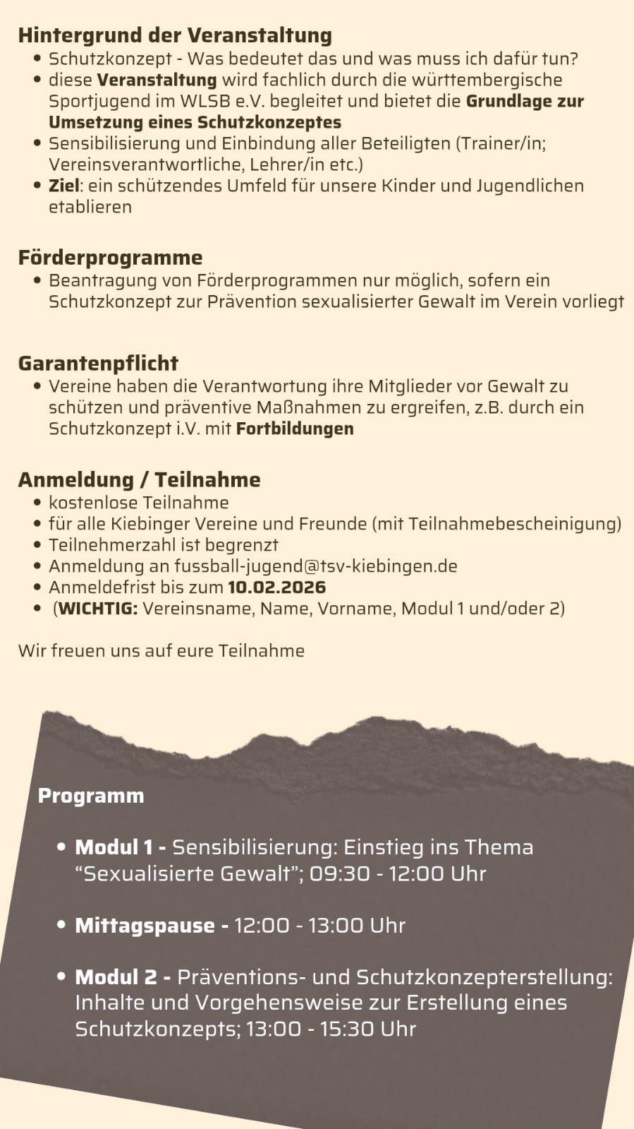 Die Veranstaltung richtet sich insbesondere an die Verantwortlichen im Jugendbereich (Jugendwart/ Jugendleiter/ Übungsleiter /Trainer, Lehrer etc.).
